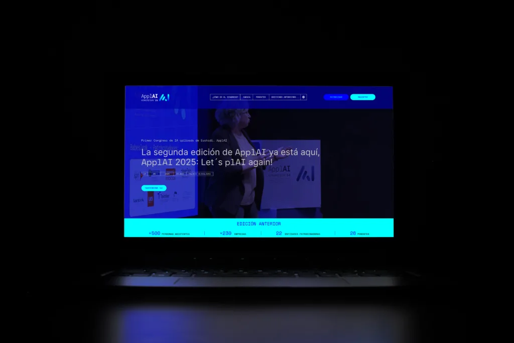 La identidad visual de ApplAI, el Congreso de Inteligencia Artificial de Euskadi impulsado por BAIC – Basque Artificial Intelligence Center, nace con el objetivo de dotar al evento de una marca propia, reconocible y con proyección internacional. Un congreso pensado como punto de encuentro entre investigación, empresa e innovación tecnológica necesitaba una identidad sólida, contemporánea y alineada con el posicionamiento de Euskadi como polo de referencia en inteligencia artificial.